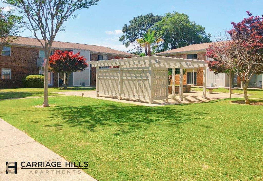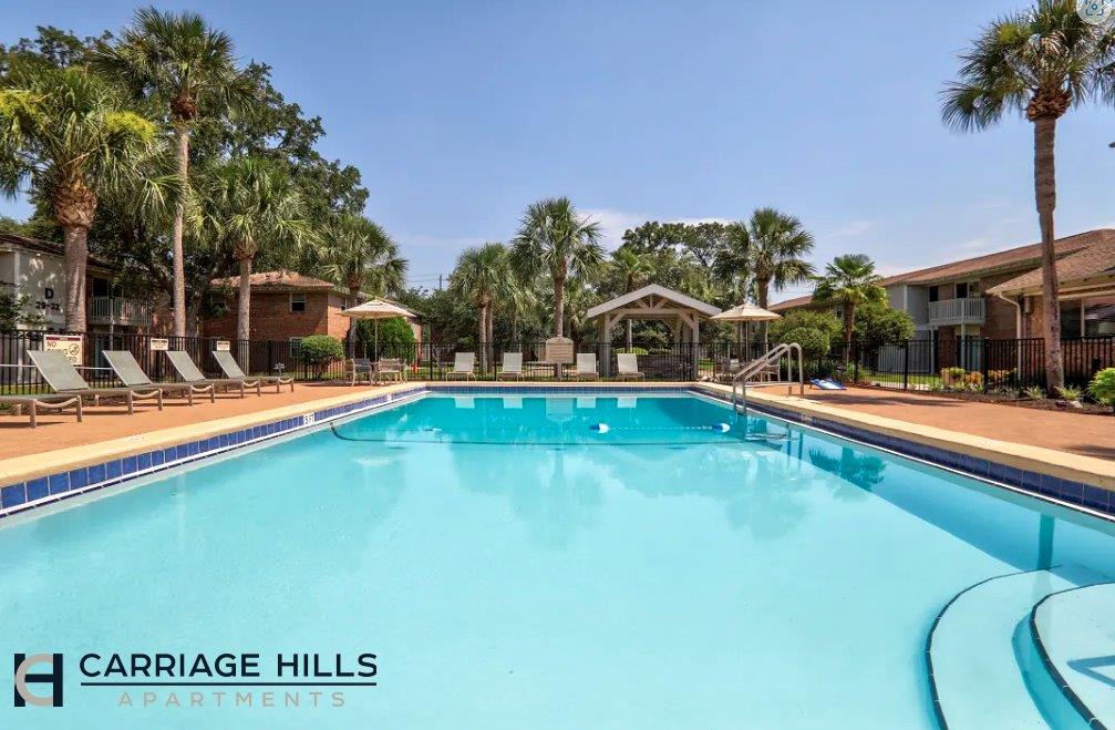Pensacola's NEWLY renovated luxury apartment community! Our 1 & 2 bedroom apartments feature available upgrades such as stainless steel appliances, wood plank flooring, and granite countertops. Our 3 bedroom town homes feature covered parking, wood burning fireplaces, front load washer & dryers, and walk in closets. Resident amenities include a resort style pool with outdoor grill, fire pit, dog park, three 24 hour laundry centers, a fitness center and WI-FI business center! Within a 10-minute drive of your Carriage Hills apartment in Pensacola are Cordova Mall, Pensacola's largest shopping center, the Sacred Heart medical complex, Pensacola Junior College, and Pensacola College, a new Rave Theater, Walmart, Target and many restaurants. Just 15 minutes away are U.S. Navy facilities, including the Navy Exchange and NAS Pensacola, the University of West Florida, historic downtown Pensacola, and just beyond its pristine, beautiful sandy beaches! Our twenty acres of quiet, shaded grounds and landscaped palm tree courtyards provide a peaceful setting for you to call home. Experience Pensacola's Private Preserve!